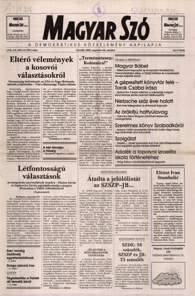 Magyar Szó, 57. évf. 2000. augusztus 26. 201. sz. 1–16. oldal