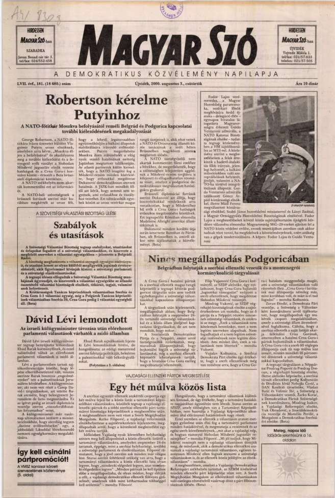 Magyar Szó, 57. évf. 2000. augusztus 3. 181. sz. 1–16. oldal