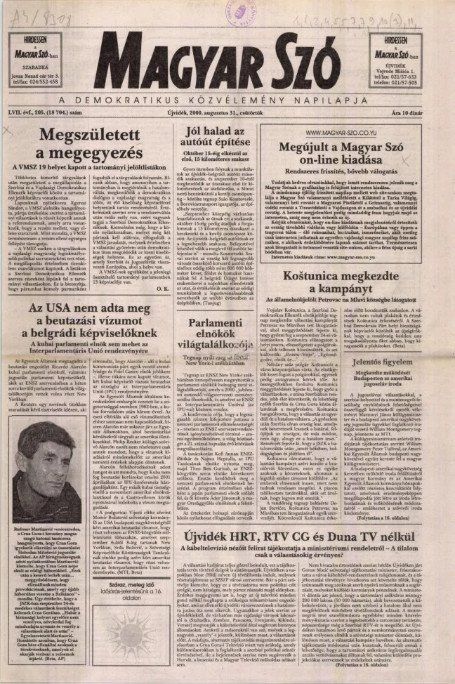 Magyar Szó, 57. évf. 2000. augusztus 31. 205. sz. 1–16. oldal