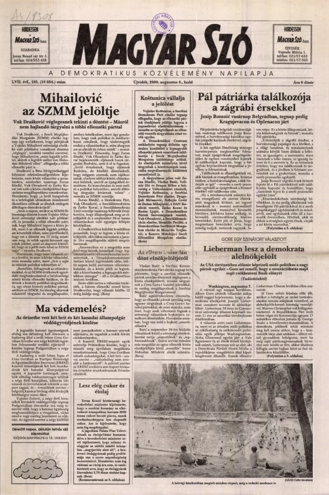 Magyar Szó, 57. évf. 2000. augusztus 8. 185. sz. 1–16. oldal