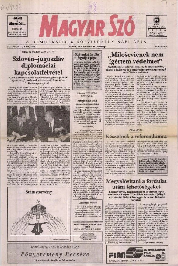 Magyar Szó, 57. évf. 2000. december 10. 291. sz. 1–24. oldal