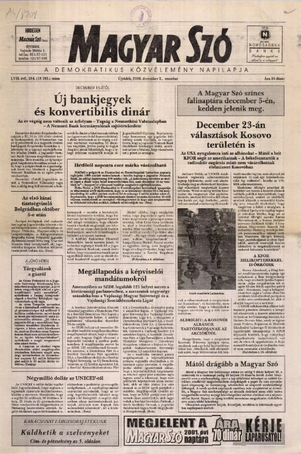 Magyar Szó, 57. évf. 2000. december 2. 284. sz. 1–16. oldal