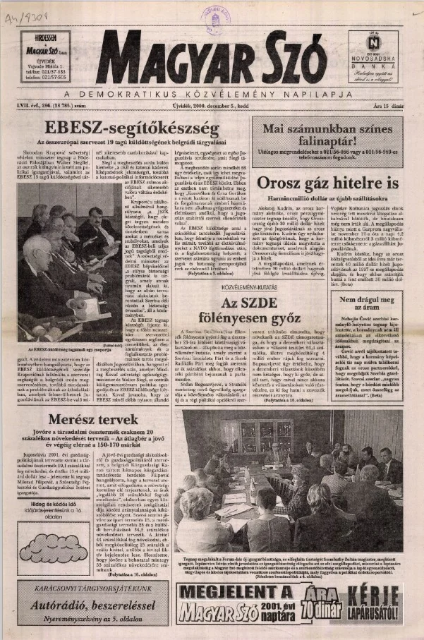 Magyar Szó, 57. évf. 2000. december 5. 286. sz. 1–16. oldal