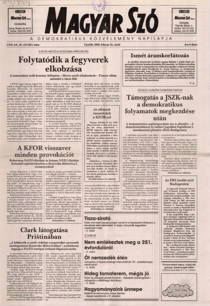 Magyar Szó, 57. évf. 2000. február 22. 43. sz. 1–16. oldal