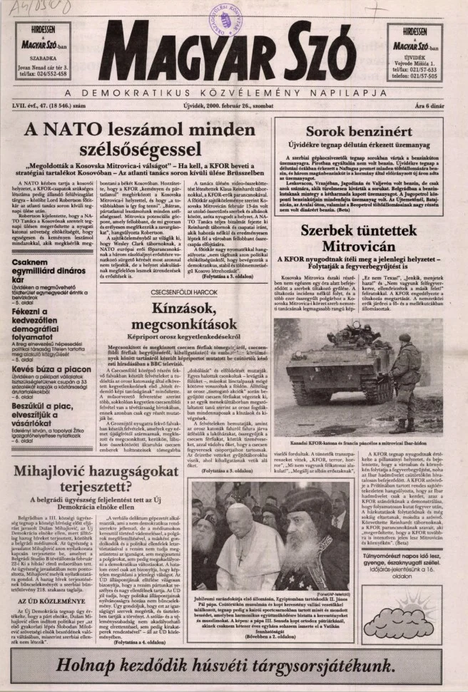 Magyar Szó, 57. évf. 2000. február 26. 47. sz. 1–16. oldal