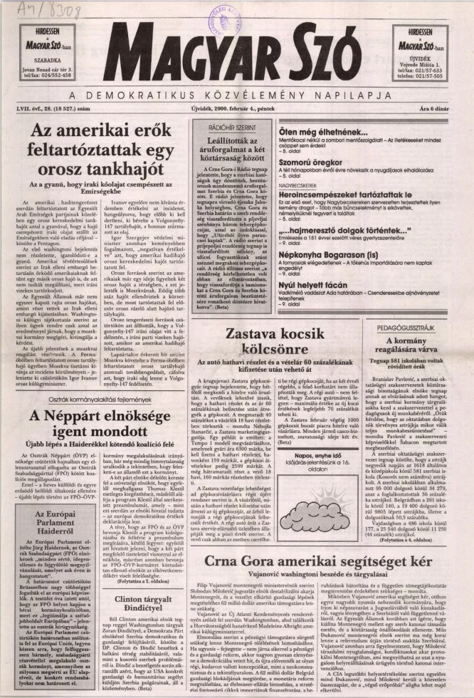 Magyar Szó, 57. évf. 2000. február 4. 28. sz. 1–16. oldal