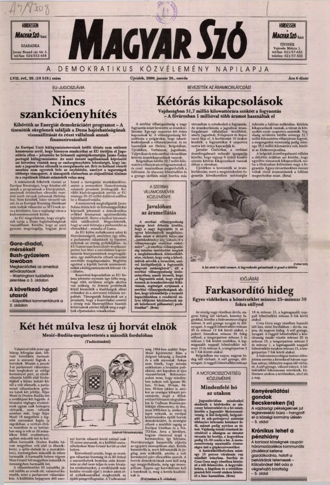 Magyar Szó, 57. évf. 2000. január 26. 20. sz. 1–16. oldal