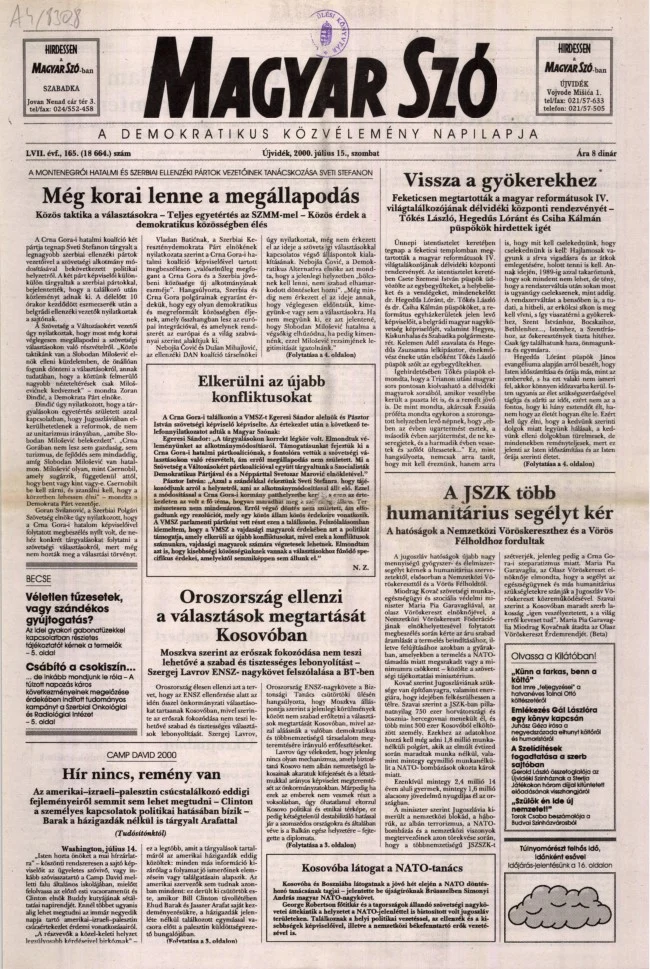 Magyar Szó, 57. évf. 2000. július 15. 165. sz. 1–16. oldal