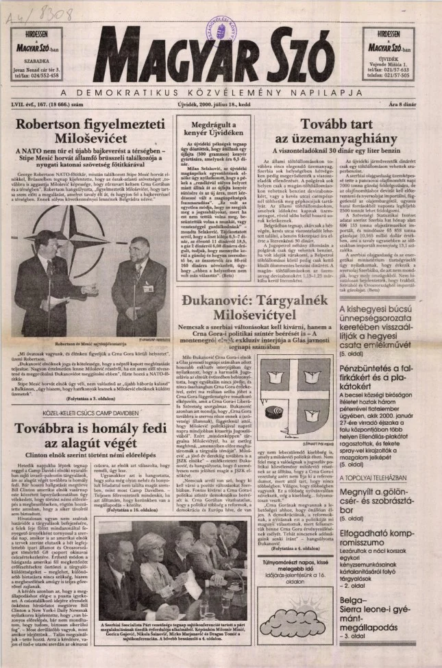 Magyar Szó, 57. évf. 2000. július 18. 167. sz. 1–16. oldal