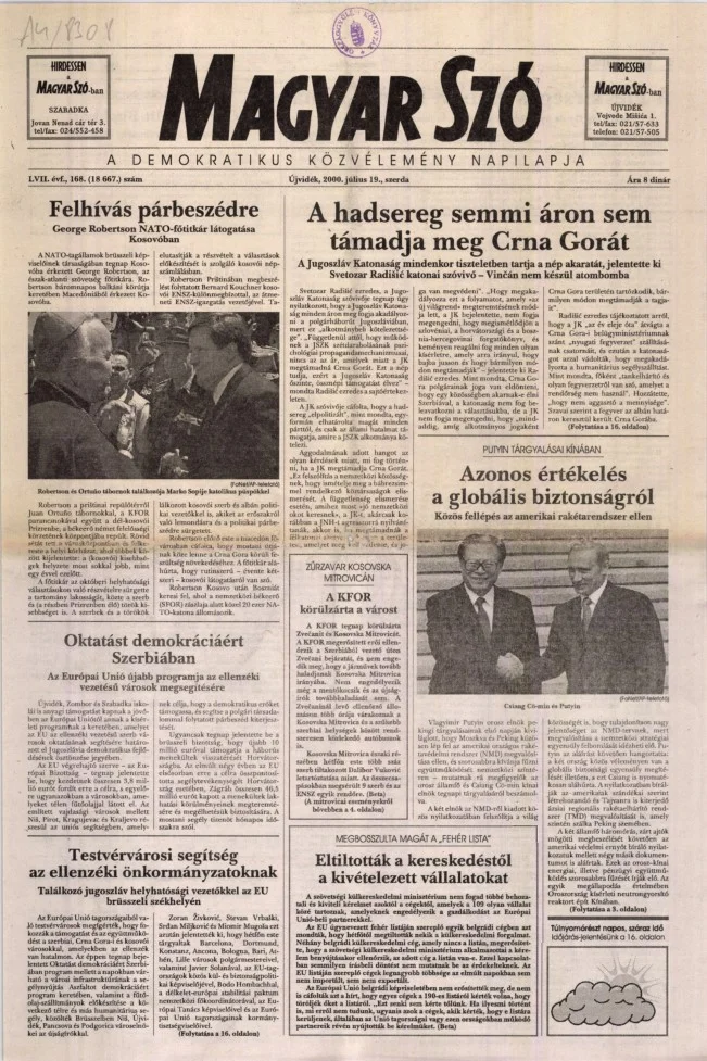 Magyar Szó, 57. évf. 2000. július 19. 168. sz. 1–16. oldal