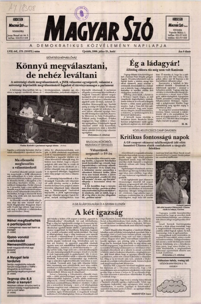 Magyar Szó, 57. évf. 2000. július 25. 173. sz. 1–16. oldal