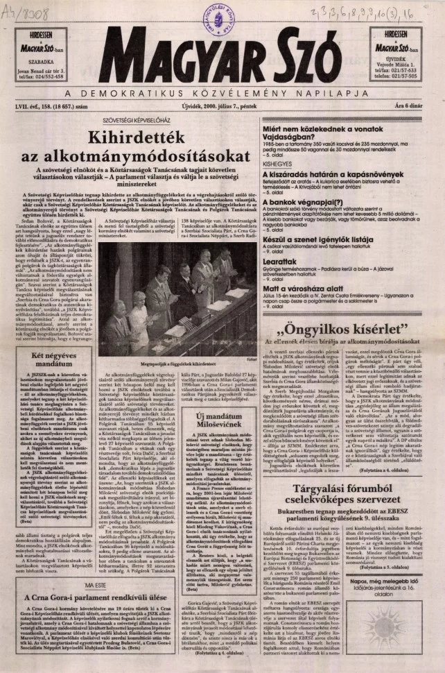 Magyar Szó, 57. évf. 2000. július 7. 158. sz. 1–16. oldal