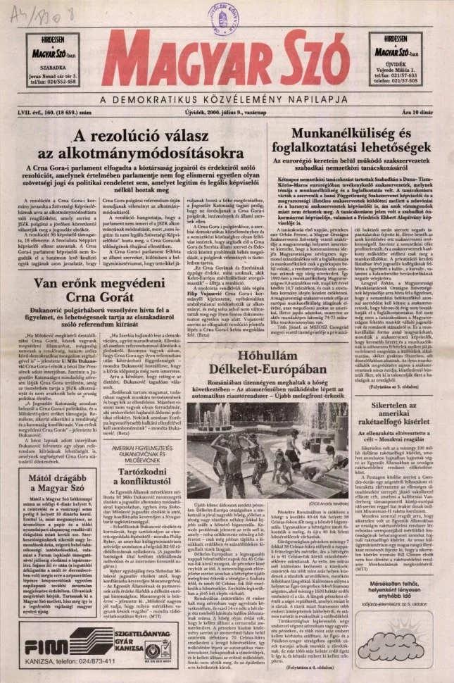 Magyar Szó, 57. évf. 2000. július 9. 160. sz. 1–24. oldal