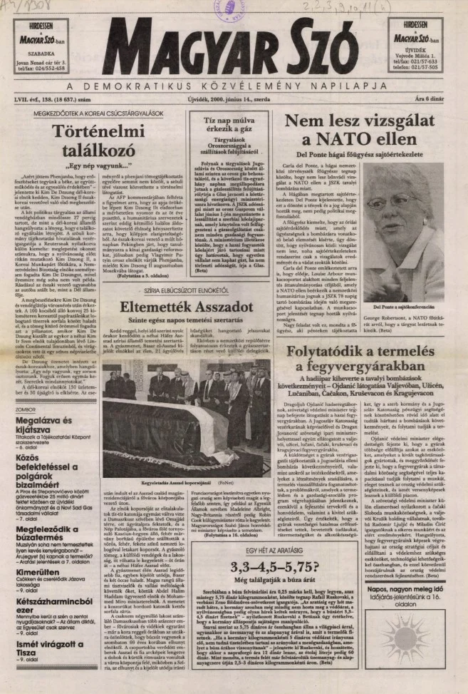 Magyar Szó, 57. évf. 2000. június 14. 138. sz. 1–16. oldal