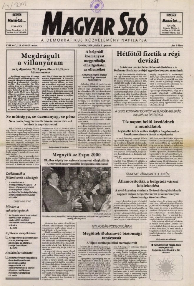 Magyar Szó, 57. évf. 2000. június 2. 128. sz. 1–16. oldal