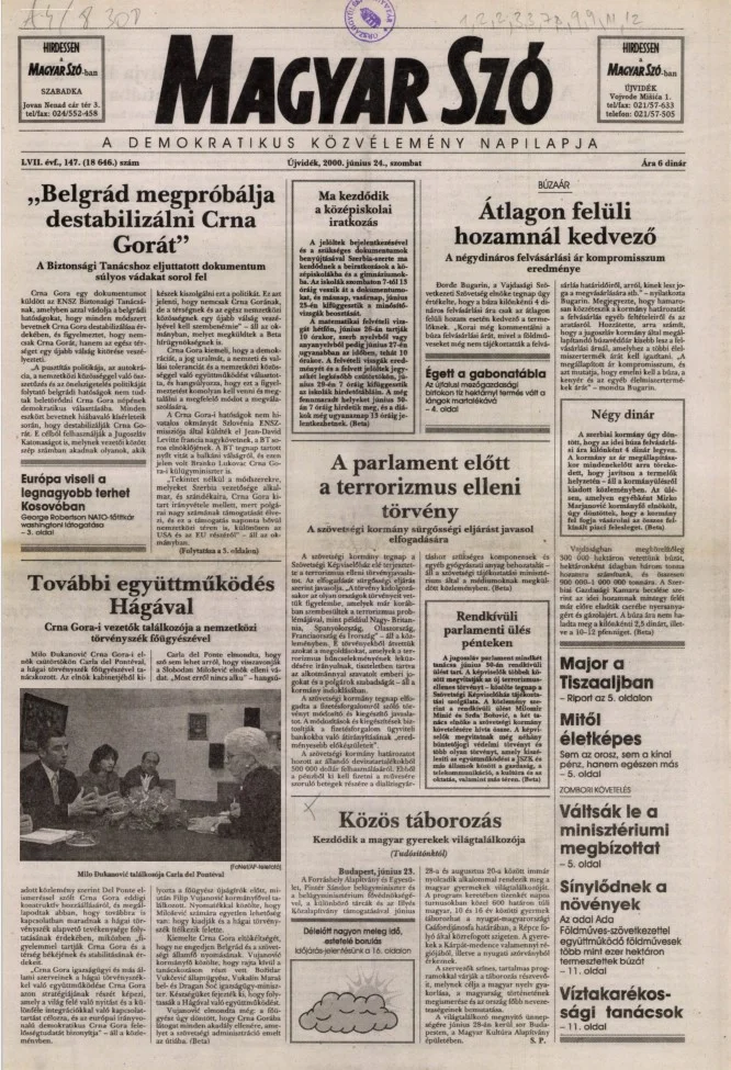 Magyar Szó, 57. évf. 2000. június 24. 147. sz. 1–16. oldal