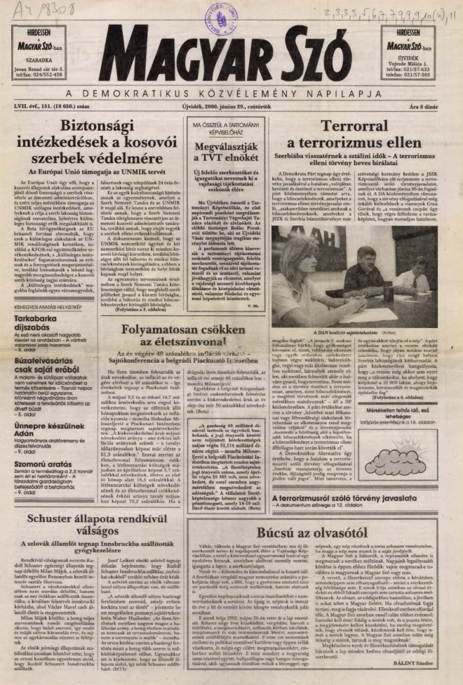 Magyar Szó, 57. évf. 2000. június 29. 151. sz. 1–16. oldal