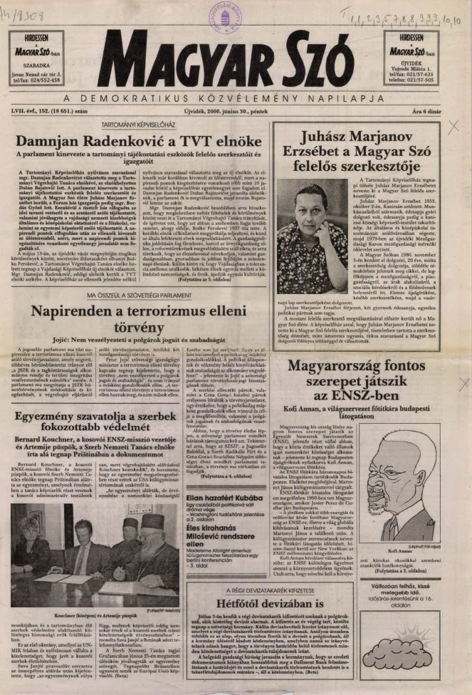 Magyar Szó, 57. évf. 2000. június 30. 152. sz. 1–16. oldal