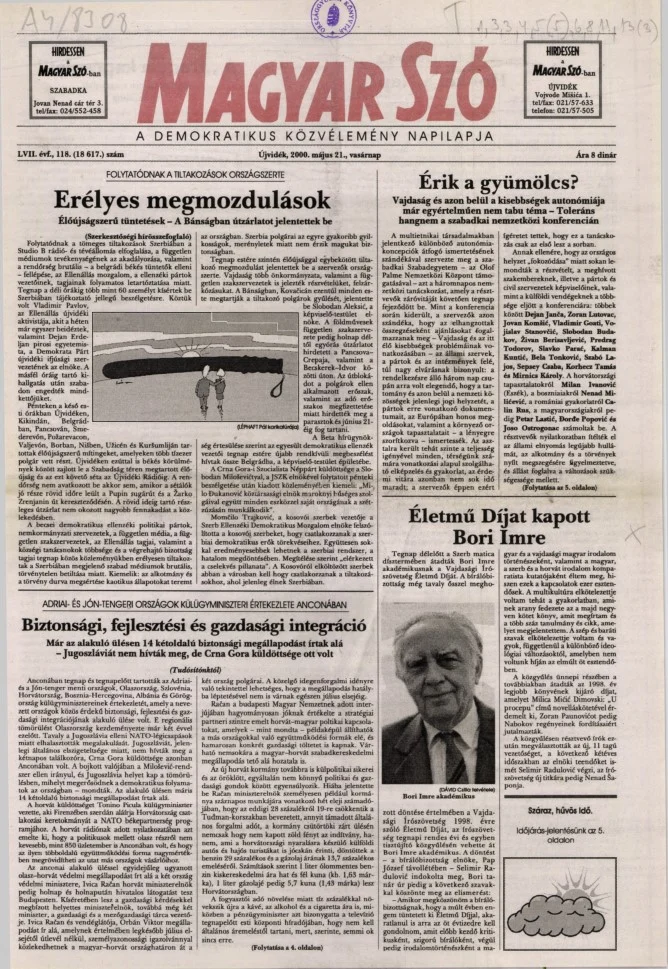 Magyar Szó, 57. évf. 2000. május 21. 118. sz. 1–24. oldal