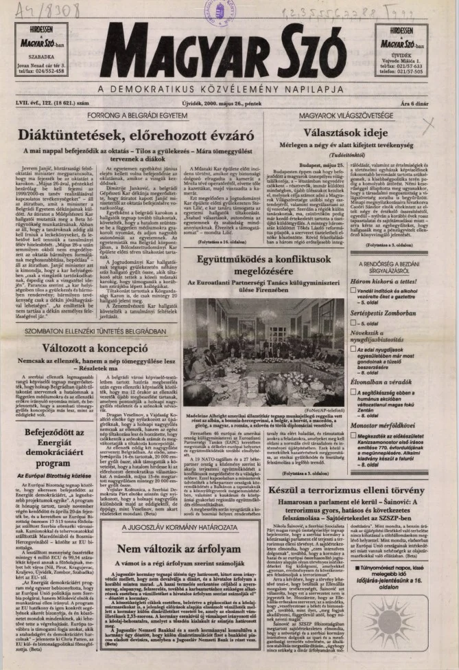 Magyar Szó, 57. évf. 2000. május 26. 122. sz. 1–16. oldal