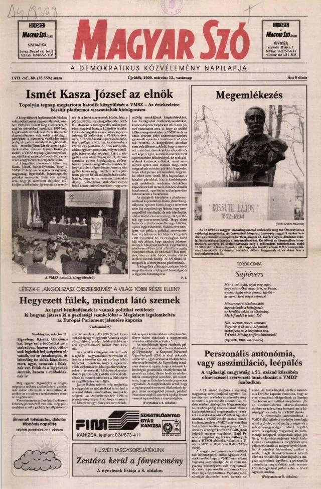 Magyar Szó, 57. évf. 2000. március 12. 60. sz. 1–24. oldal