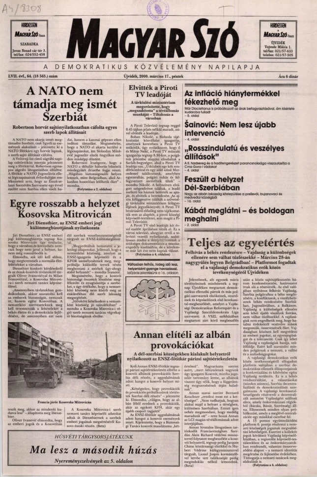 Magyar Szó, 57. évf. 2000. március 17. 64. sz. 1–16. oldal