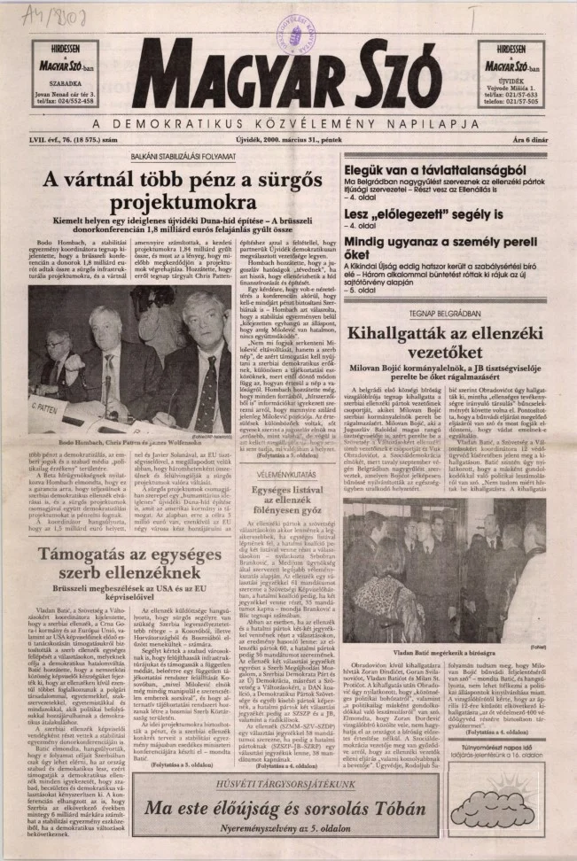Magyar Szó, 57. évf. 2000. március 31. 76. sz. 1–16. oldal