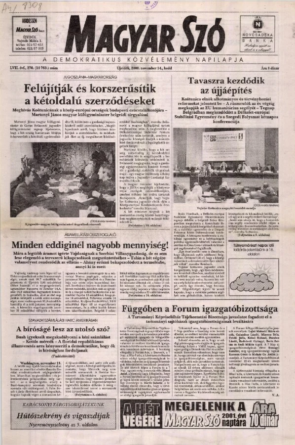 Magyar Szó, 57. évf. 2000. november 14. 270. sz. 1–16. oldal