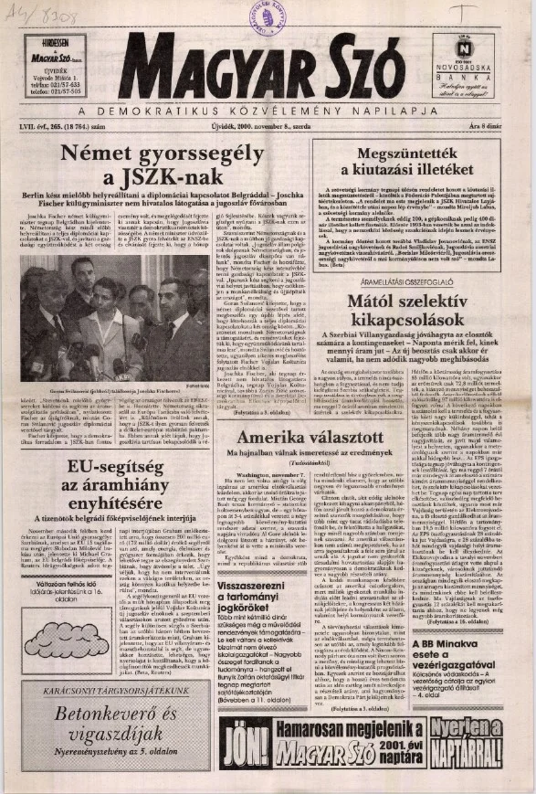 Magyar Szó, 57. évf. 2000. november 8. 265. sz. 1–16. oldal