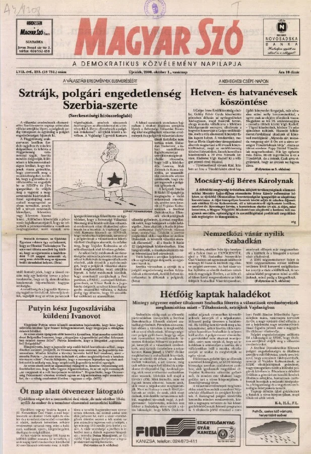 Magyar Szó, 57. évf. 2000. október 1. 233. sz. 1–24. oldal