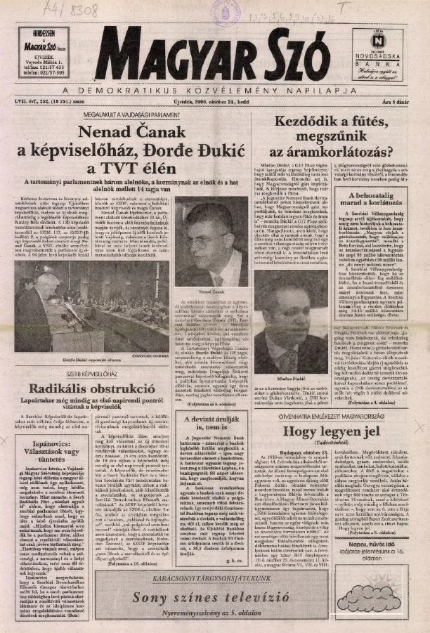 Magyar Szó, 57. évf. 2000. október 24. 252. sz. 1–16. oldal