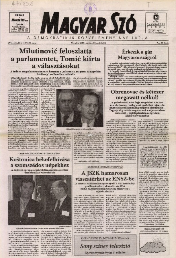 Magyar Szó, 57. évf. 2000. október 26. 254. sz. 1–16. oldal