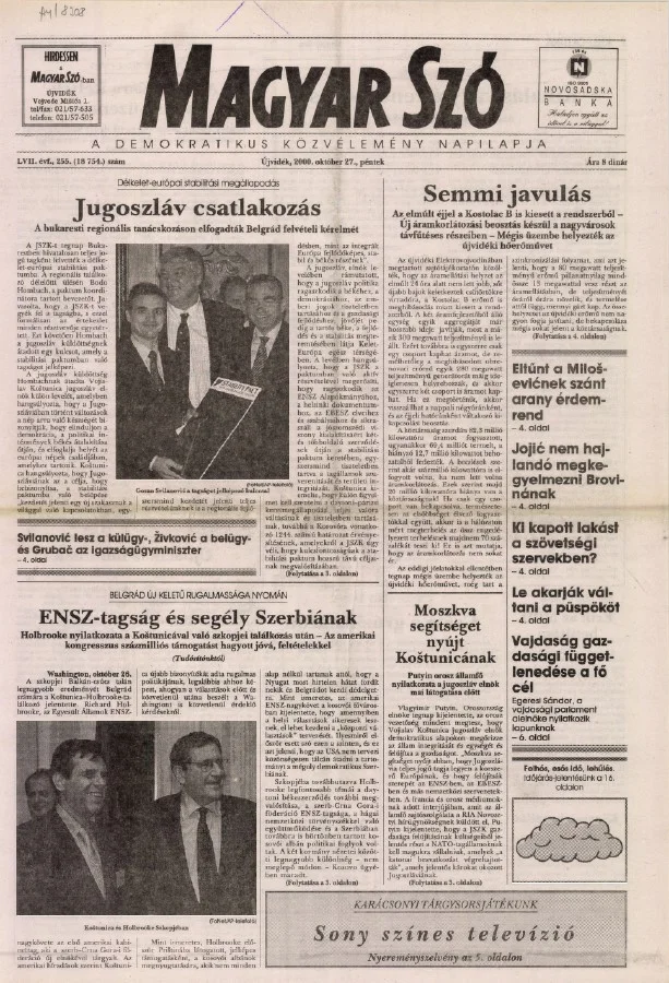 Magyar Szó, 57. évf. 2000. október 27. 255. sz.