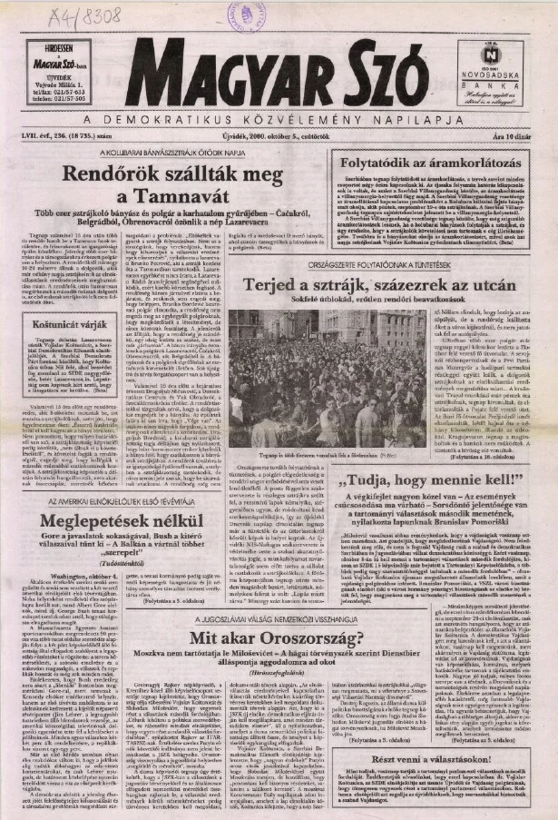 Magyar Szó, 57. évf. 2000. október 5. 236. sz. 1–16. oldal