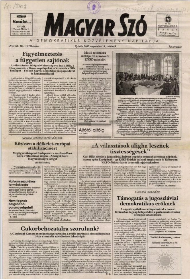 Magyar Szó, 57. évf. 2000. szeptember 14. 217. sz. 1–16. oldal