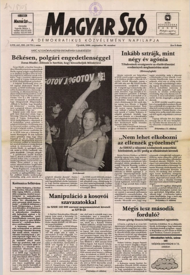 Magyar Szó, 57. évf. 2000. szeptember 30. 232. sz. 1–16. oldal