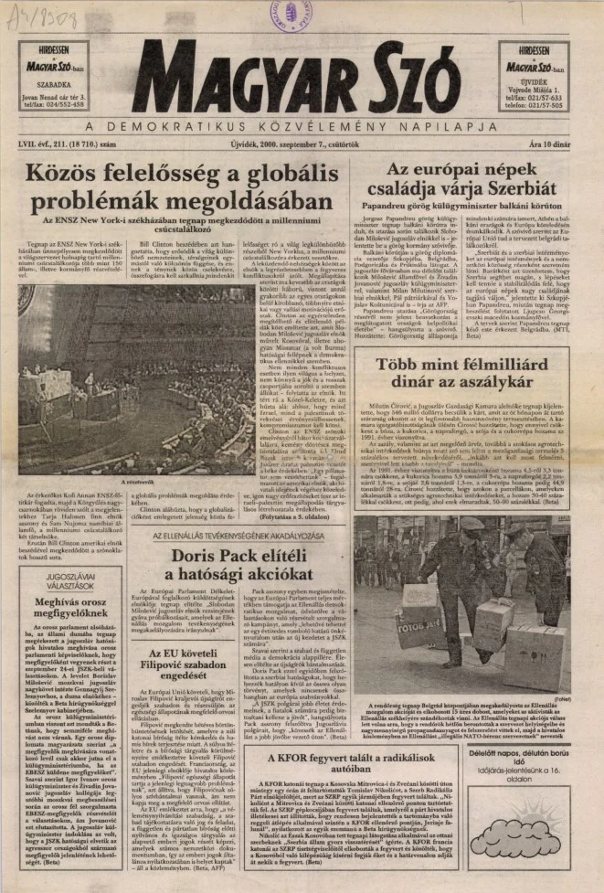 Magyar Szó, 57. évf. 2000. szeptember 7. 211. sz. 1–16. oldal