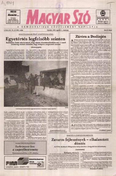 Magyar Szó, 58. évf. 2001. április 1. 76. sz. 1–32. oldal