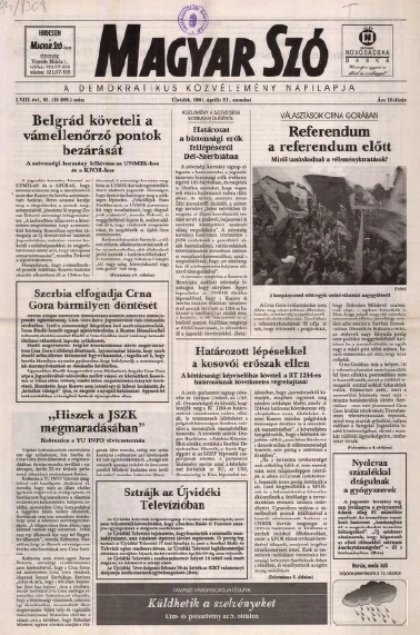 Magyar Szó, 58. évf. 2001. április 21. 93. sz. 1–16. oldal