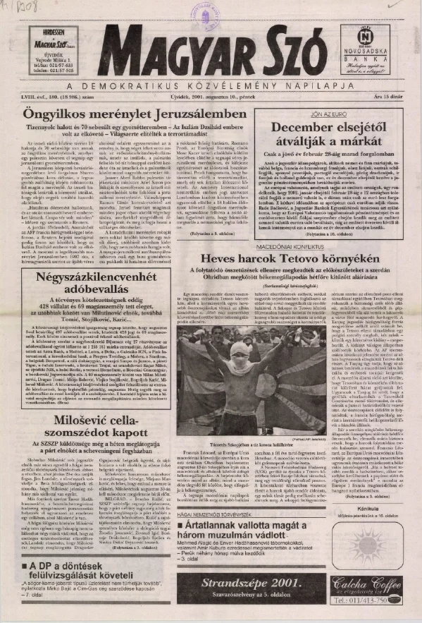 Magyar Szó, 58. évf. 2001. augusztus 10. 180. sz. 1–16. oldal