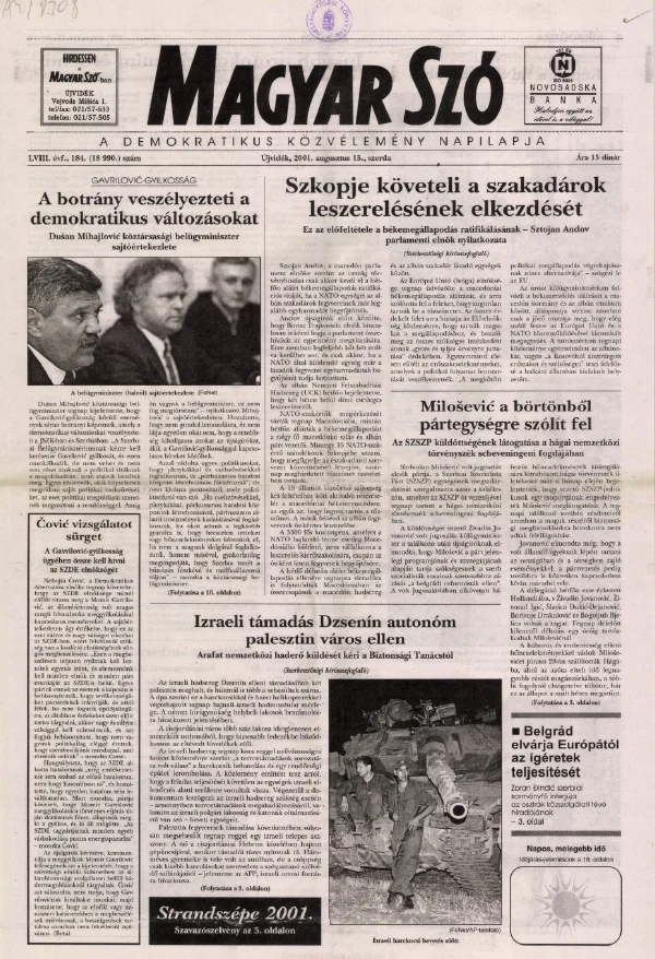 Magyar Szó, 58. évf. 2001. augusztus 15. 184. sz. 1–16. oldal