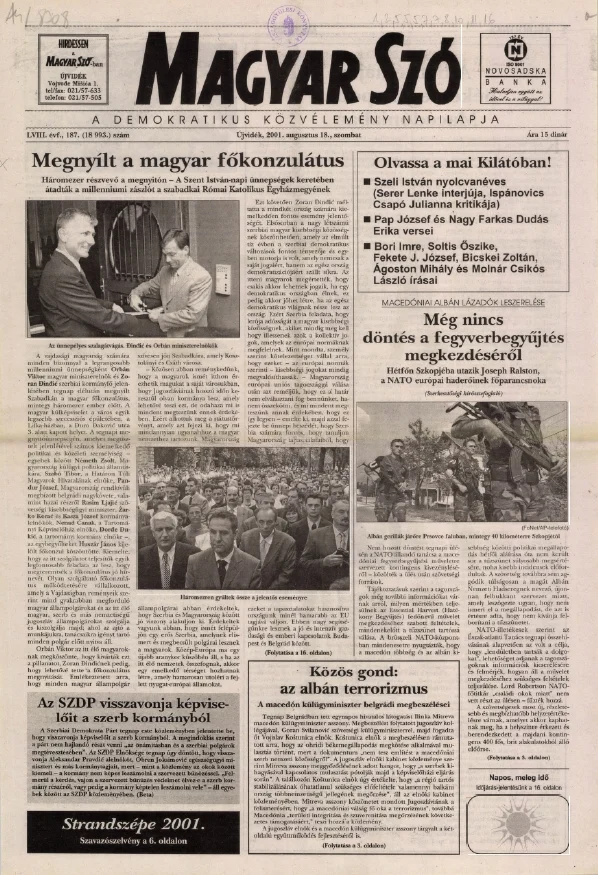Magyar Szó, 58. évf. 2001. augusztus 18. 187. sz. 1–16. oldal