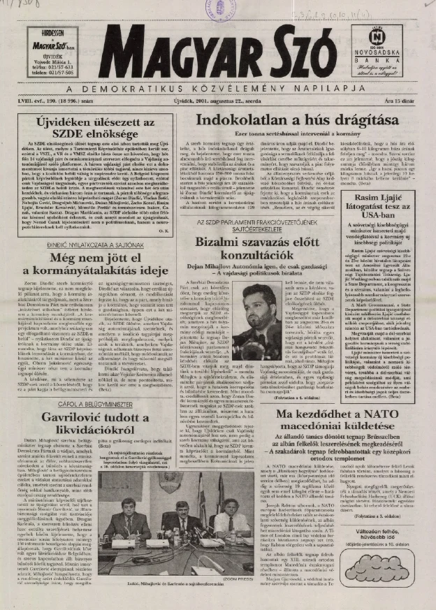 Magyar Szó, 58. évf. 2001. augusztus 22. 190. sz. 1–16. oldal