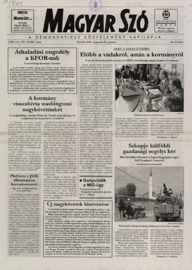 Magyar Szó, 58. évf. 2001. augusztus 24. 192. sz. 1–16. oldal