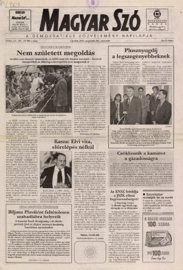 Magyar Szó, 58. évf. 2001. augusztus 30. 197. sz. 1–16. oldal