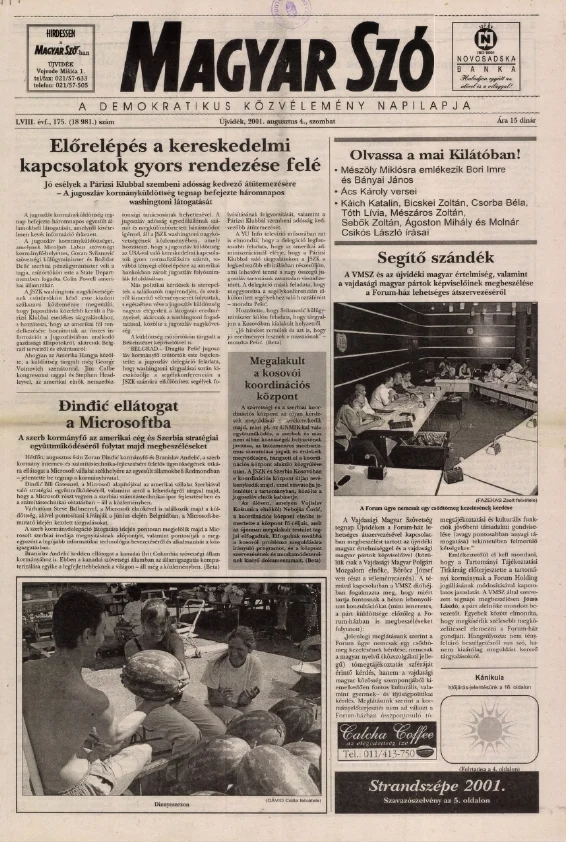 Magyar Szó, 58. évf. 2001. augusztus 4. 175. sz. 1–16. oldal