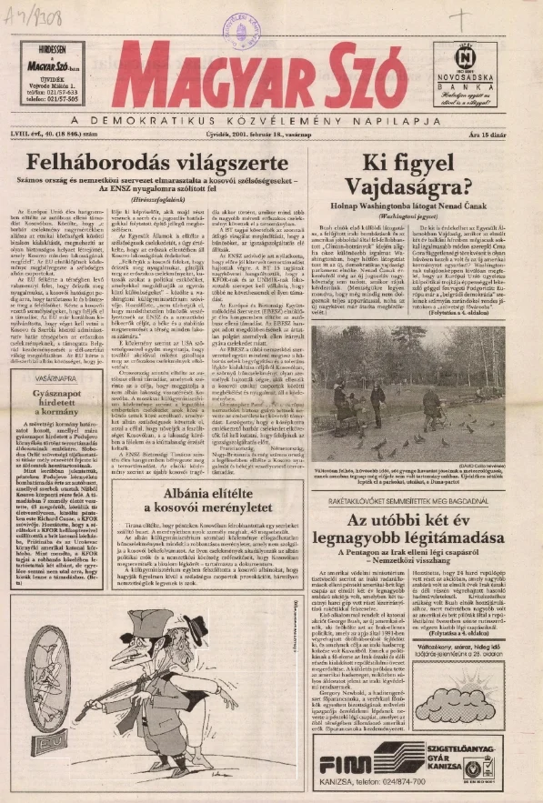 Magyar Szó, 58. évf. 2001. február 18. 40. sz. 1–28. oldal
