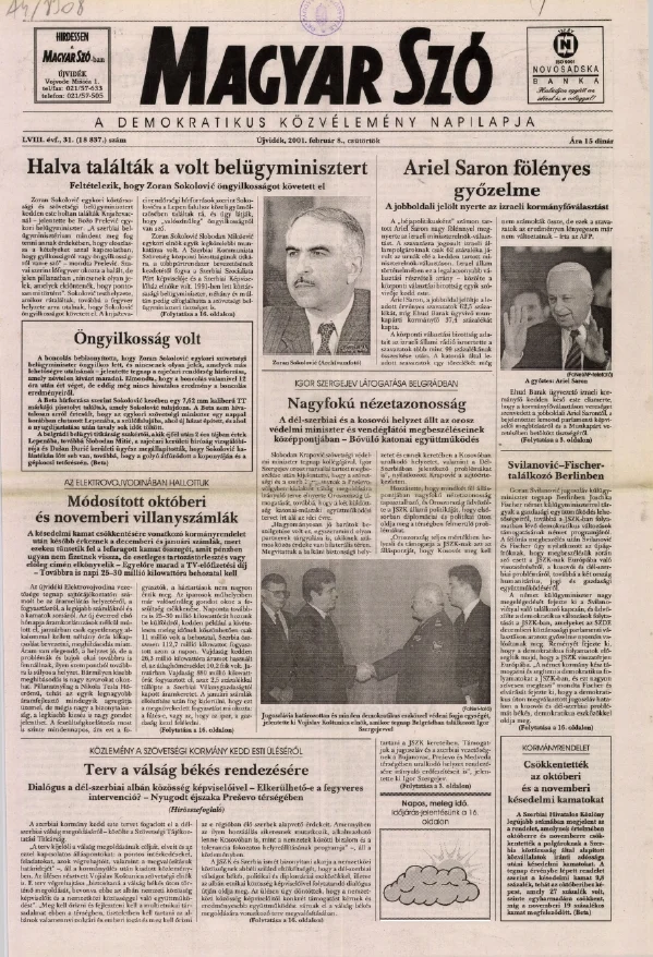 Magyar Szó, 58. évf. 2001. február 8. 31. sz. 1–16. oldal