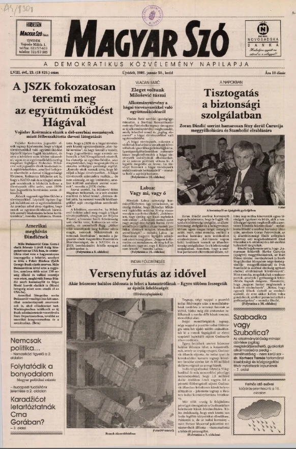 Magyar Szó, 58. évf. 2001. január 30. 23. sz. 1–16. oldal