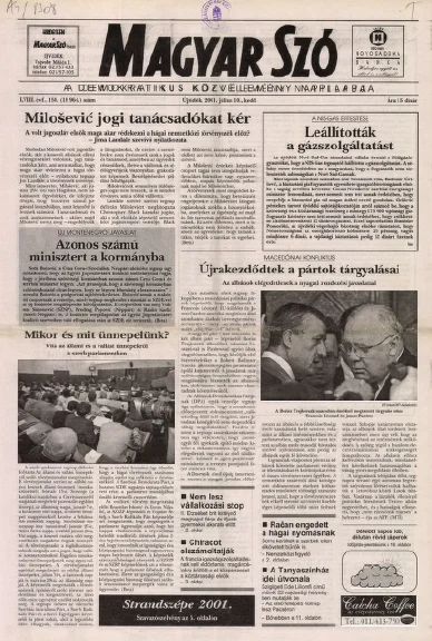 Magyar Szó, 58. évf. 2001. július 10. 158. sz. 1–16. oldal